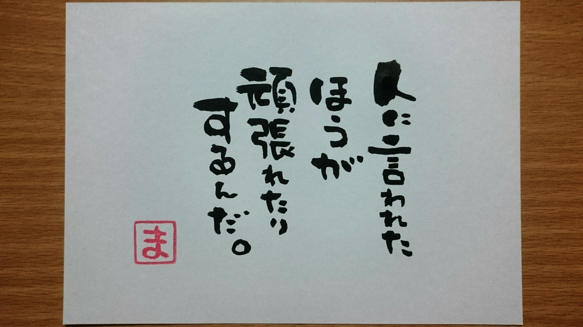 今日のひとりごと。448 『人に言われたほうが頑張れたりするんだ。』 自分だけじゃできないことも、 自分の思いだけじゃできないことも、 自分の力だけじゃできないことも、 あなたがいる、 あなたが声をかけてくれる、 あなたが期待してくれる、、 あなたの言葉が心の中で何度もこだまする。。。