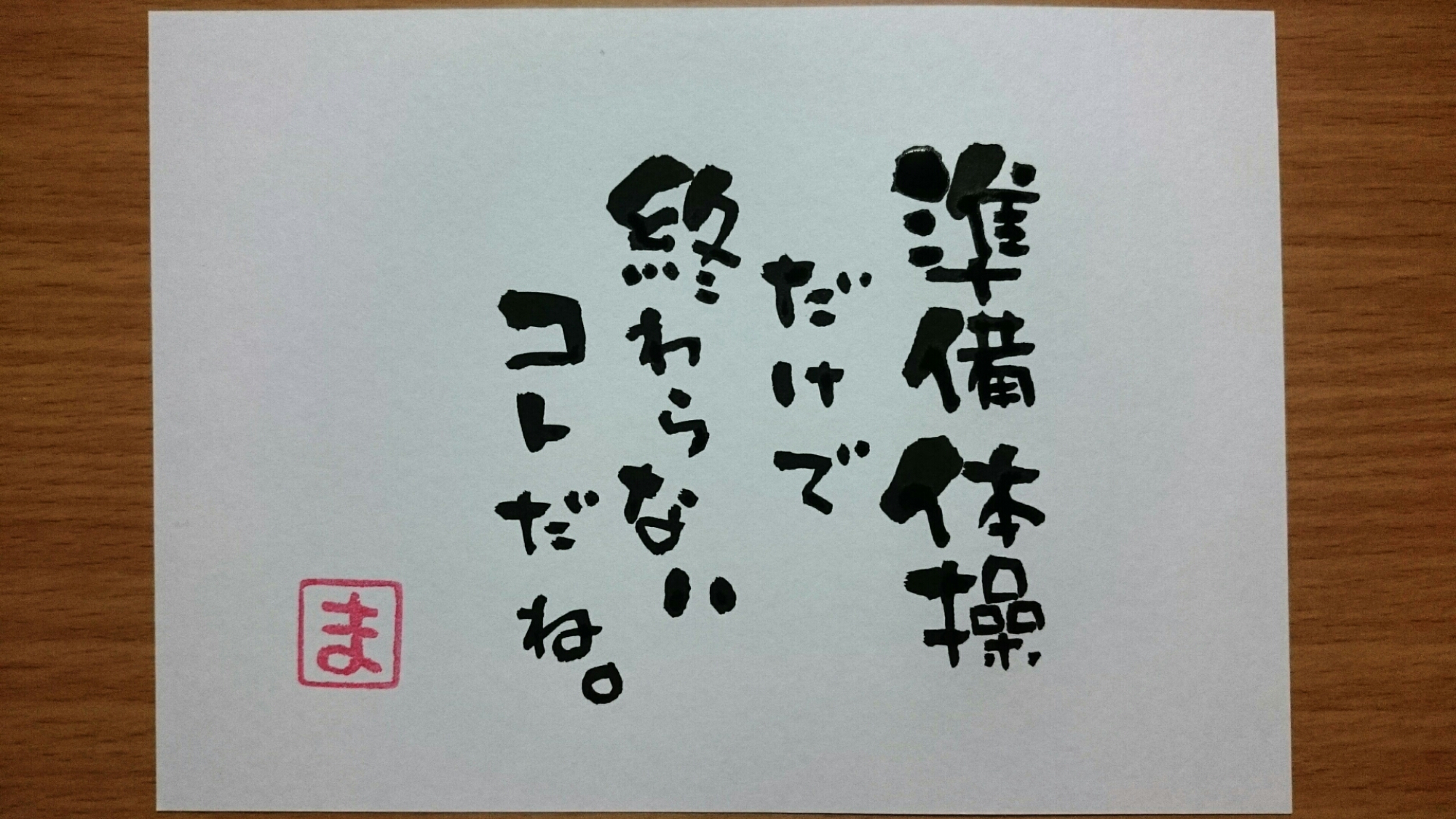 今日のひとりごと。429 『準備体操だけで終わらないコトだね。』 入念に入念に準備して、とにかくとにかく準備を完璧に万全にしようとして、なかなか肝心な本番への第一歩を踏み出していなかったりする。 どこかに不安があるんだよね。 どこかに恐怖があるんだよね。 でも、見えないからこそ一歩進んでみて近づいてみる。 少しずつ少しずつ視界が広がる。 … 続きを読む »今日のひとりごと。429