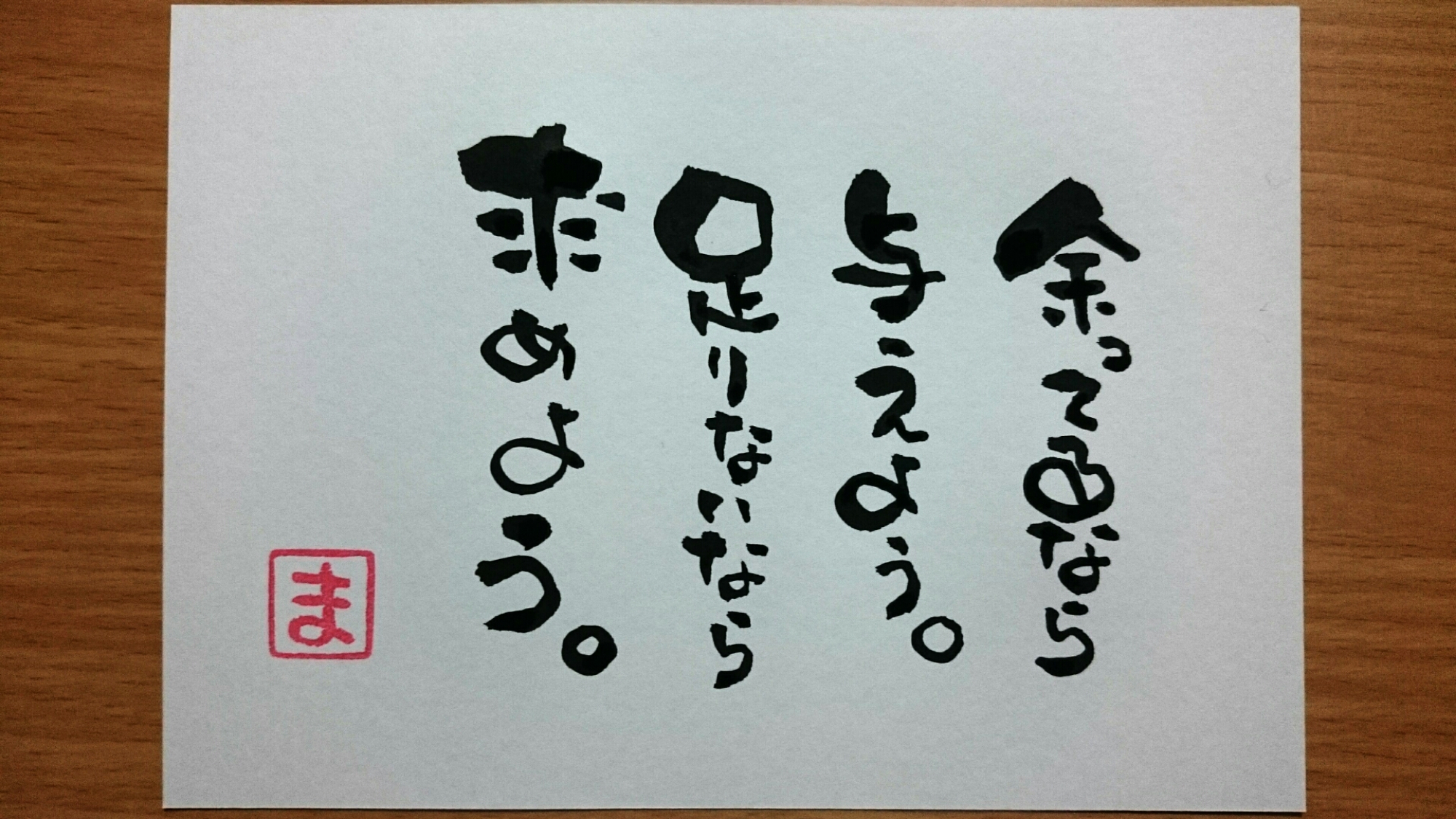 今日のひとこと。371 『余ってるなら与えよう。足りないなら求めよう。』 いらないもの、余ってるもので、それがほしい人がいたら、あげる。 これは普通かな。 必要なもの、ほしいもの、自分に足りないもの、がある時に、どうするか。 すぐに諦めるのか。 自分の力でできるようになったり、作り上げたりするか。 他の人からもらうか。 たしかに迷惑なこと… 続きを読む »今日のひとこと。371