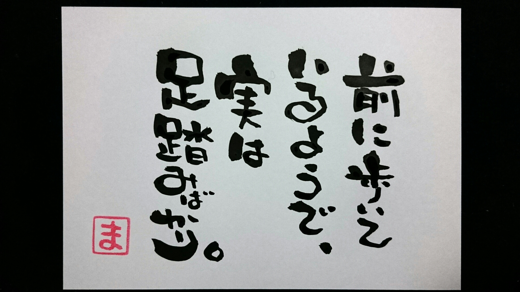 今日のひとこと。368 『前に歩いているようで、実は足踏みばかり。』 自分は頑張ってる。 自分は努力している。 とにかくもがき苦しみ、そして前に進んでいる。 と、自分では思っていても、客観的に見たら、そんなに前に進んでいなかったりする。 自分の目指すべき方向に向かって、足を出してこそ、前に進めるのであって、それがなければ右往左往したり、足… 続きを読む »今日のひとこと。368