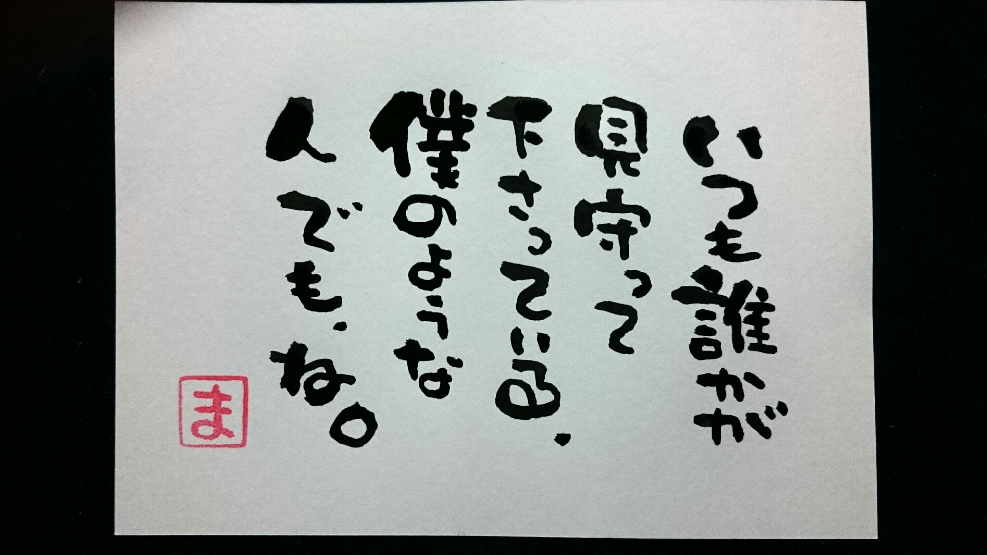 今日のひとこと。367 『いつも誰かが見守って下さっている、僕のような人でも、ね。』 そう思うと、気が楽になるんだな。 やっぱり何だかんだ人に認められたくて生きている。それは人の役に立っているということにもつながってゆくから。 目に見えない何かの力がけっこう大きな心の支えになったりする。 友達のことが頭に浮かんで、 先生や師匠のことを思い… 続きを読む »今日のひとこと。367