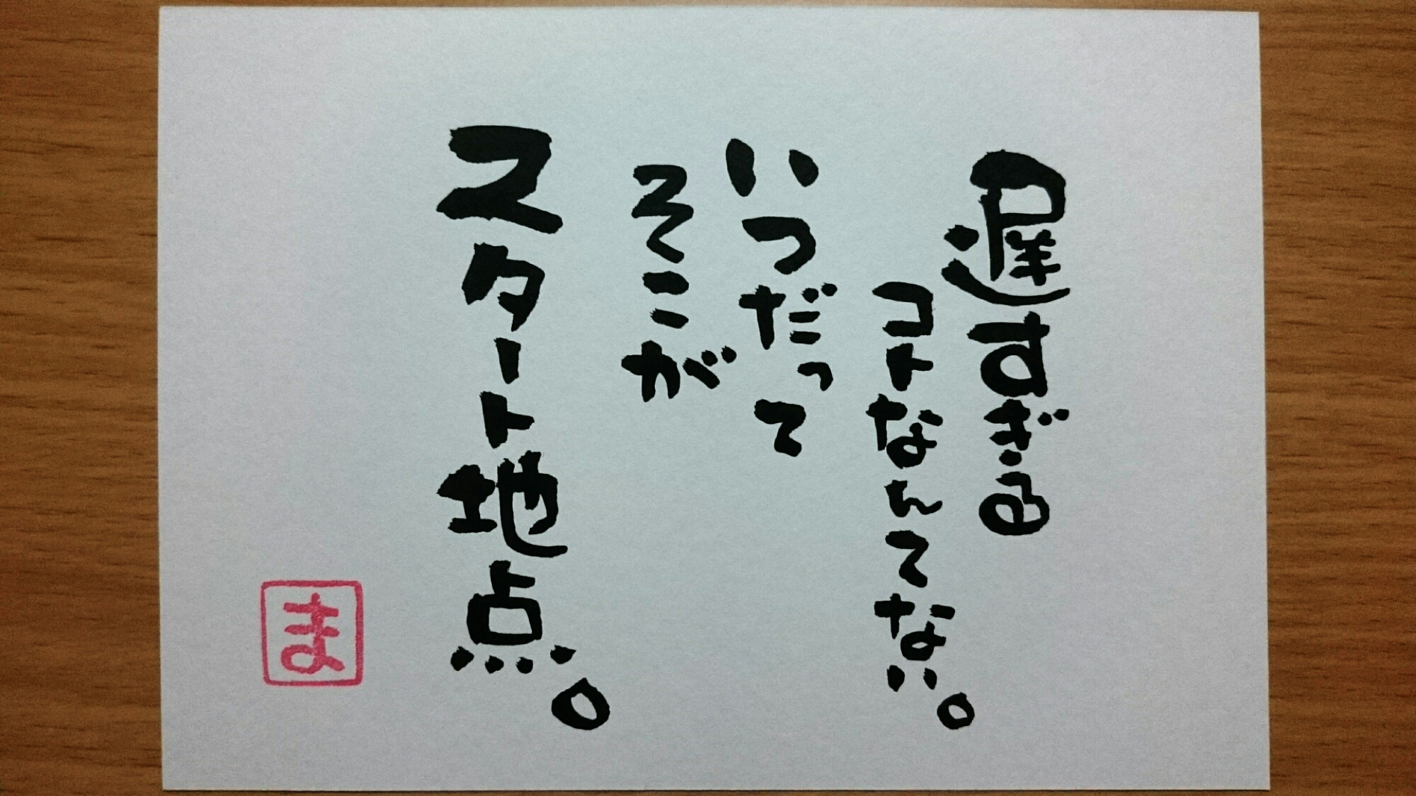 今日のひとこと。366 『遅すぎるコトなんてない。いつだってそこがスタート地点。』 何かを始めるのに遅すぎることなんてない。 その時その時が大事なタイミング。 巡ってきたものすべてがチャンス。 追いかけてゆくものすべてが自分のものに。 何を選択し、 何に集中し、 何を残すか。 いつもここから未来は始まる(^^)/