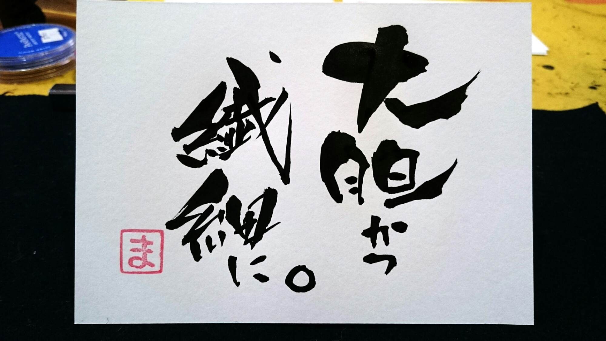 今日のひとこと。351 『大胆かつ繊細に。』 今日は書道教室で先生から「大胆と乱暴は違う」と教わりました。 ただ勢いに任せて書くんじゃなくて、余白と穂先の動きをしっかりと確認しながらリズム感を出して書く。 普段の生活に置き換えてみると、行き当たりばったり気持ちだけで行動するんじゃなくて、未来のこと、周りの人のことを考えながら、アクションを… 続きを読む »今日のひとこと。351