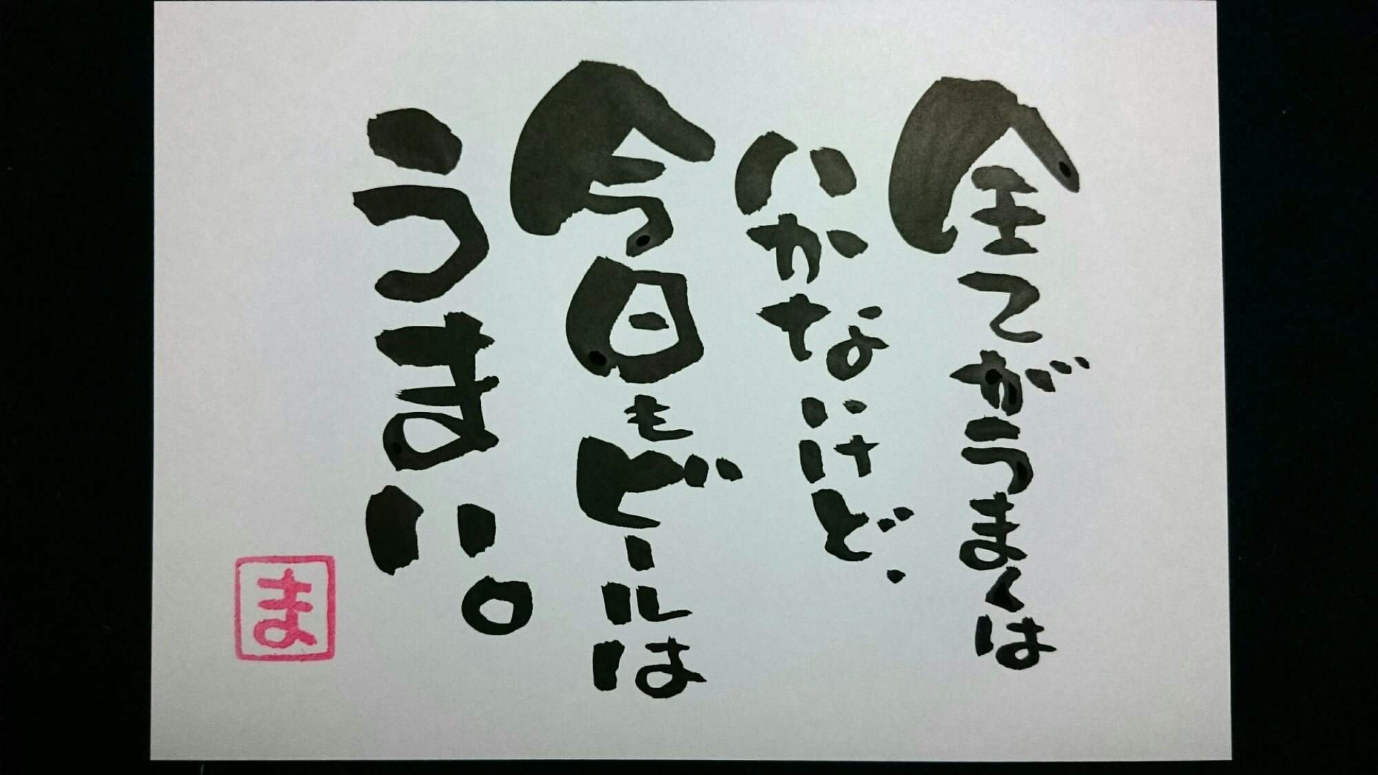 今日のひとこと。282 『全てがうまくはいかないけど、今日もビールはうまい。』 忘年会シーズン。 よかったこと悪かったこと、 楽しかったこと苦しかったこと、 今年もいろんなことがあった1年。 全てがうまくいったわけじゃないけど、むしろうまくいかなかったことのほうが多いかもしれないけど、 それでも友や仲間と集まれたってことは、おいしいビール… 続きを読む »今日のひとこと。282
