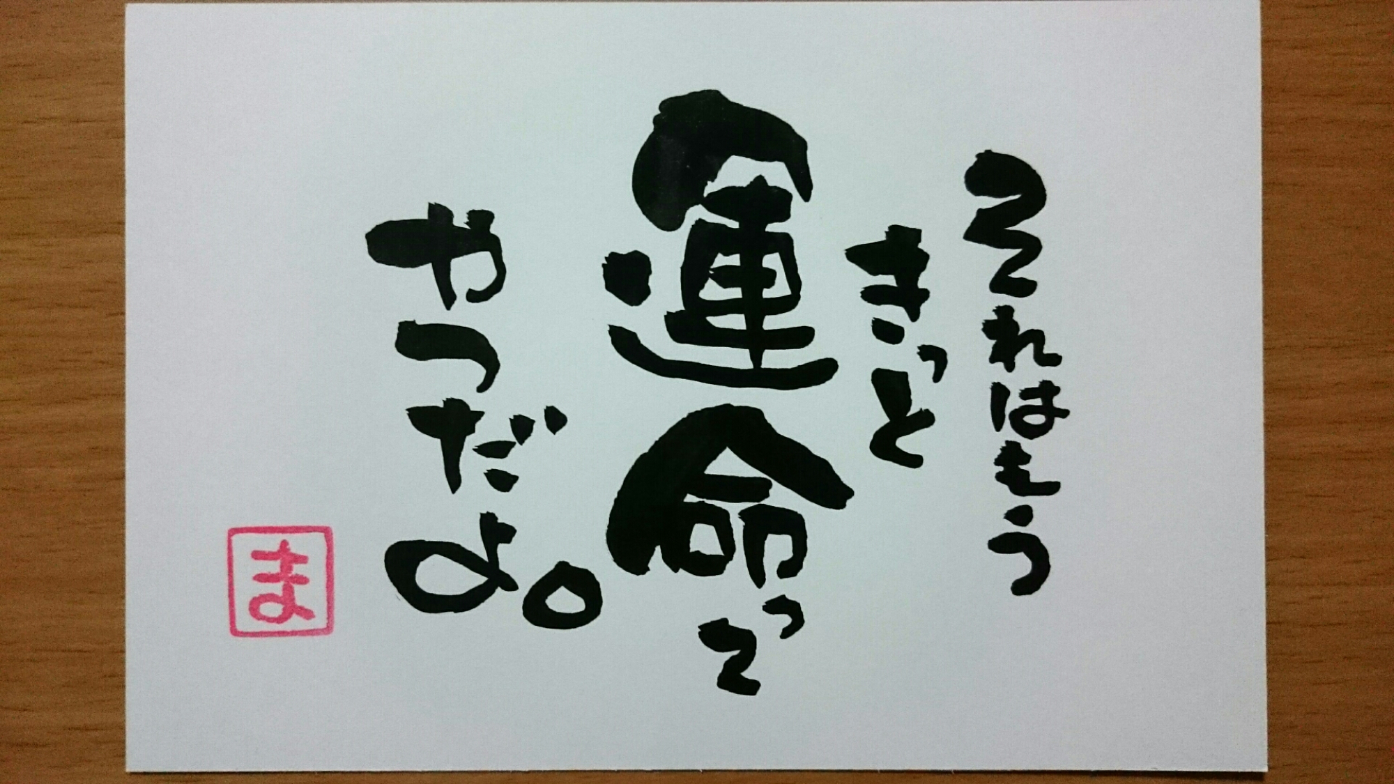 今日のひとこと。257 『それはもうきっと運命ってやつだよ。』 なんでこんなことに!?!!?? それが自分の導き出した結果であり、そこが自分の導き出されたステージ。 そんなことになるのが、あなたの人生だったんですね。 そう、こんなことになるのが、僕の人生だったんですね。笑 すべての現実を受け止めて進みましょう! 運も実力(^^)/