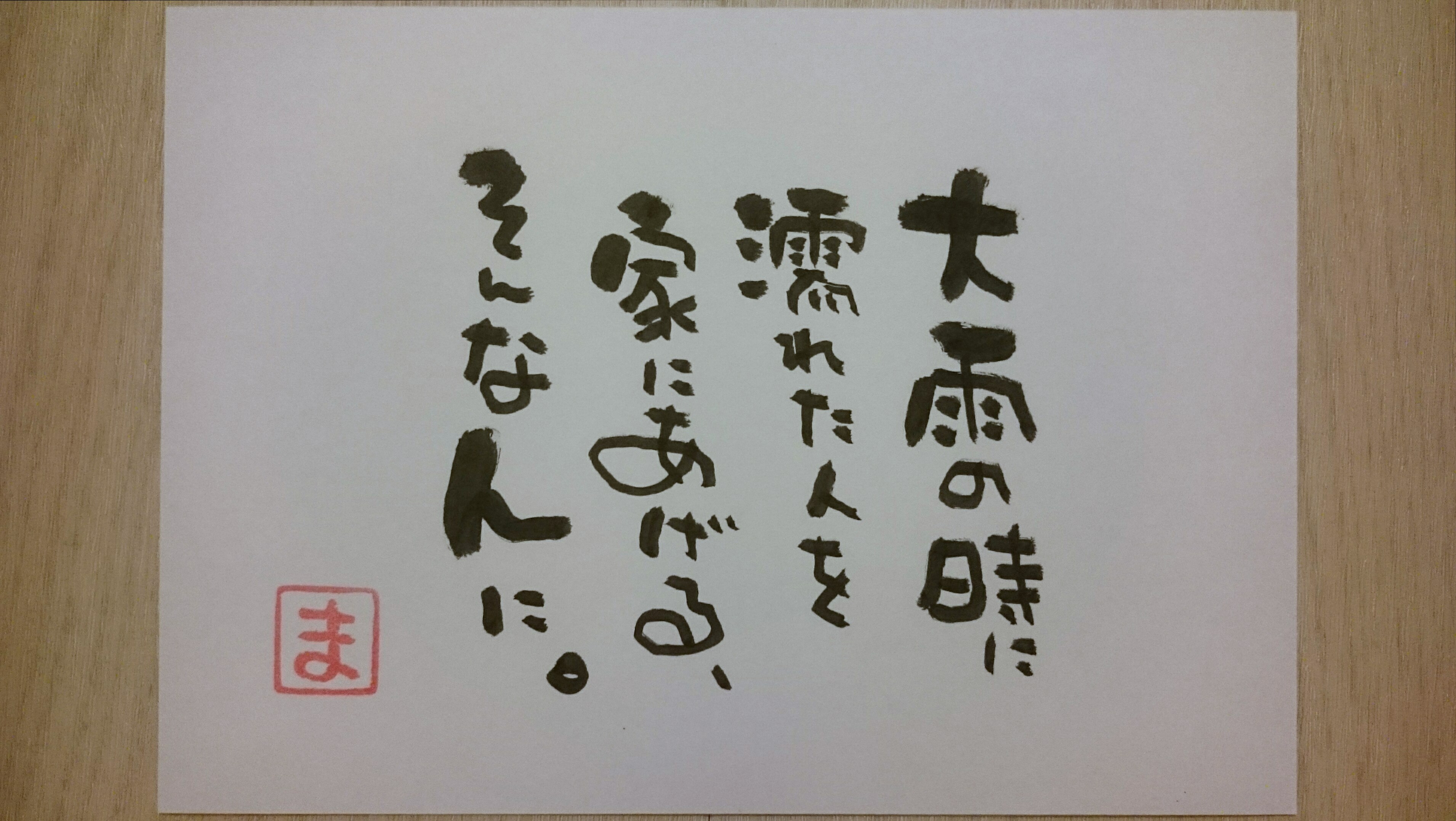 今日のひとりごと。907 『大雨の時に濡れた人を家にあげる、そんな人に。』 小雨の時に傘を貸してくれる人はいるけど、大雨の時に傘を貸してくれる人はなかなかいない。自分を犠牲にしてまでも人を助けてあげれる、そんな強く大きな人に、なりたい。