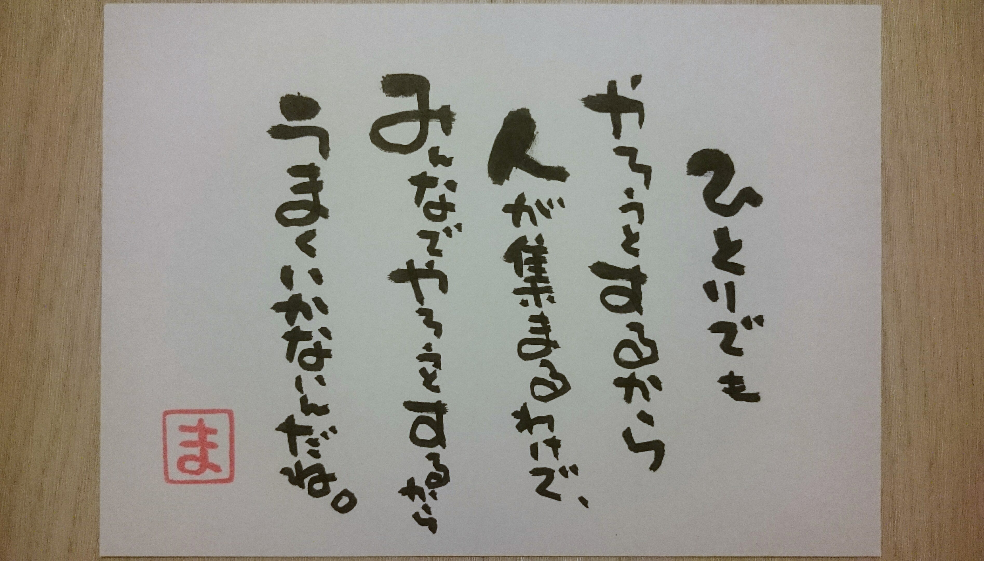 今日のひとりごと。908 『ひとりでもやろうとするから人が集まるわけで、みんなでやろうとするからうまくいかないんだね。』 誰かの力に頼るんじゃなくて、自分の力に挑戦する。そこに協力や見えない力が生まれるんじゃないかな。